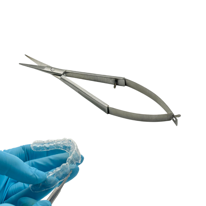 产品特点:弹簧加载设计采用弹簧机制实现自动开合,减少手指持续用力的需求,长时间使用时能降低手部疲劳感;符合人体工程学原理,提供更好的握持舒适度,尤其适合重复性操作。精度高控制好便于进行切割,刃口锋利度高,能实现更精准的剪裁,减少材料拖拽或撕裂现象,适用于需要精细控制的场景,如美白托盘牙龈线边缘的修剪等。安全耐用采用高强度不锈钢材料制作,经久耐用